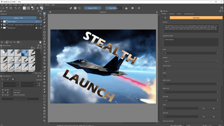 지난 8월 오픈소스로 일반 공개된 이미지 생성 AI인 스테이블 디퓨전(Stable Diffusion)은 일반 커맨드라인으로 입력이나 제어를 하지만 초보자라도 간단하게 조작할 수 있는 스테이블 디퓨전용 GUI가 많이 나오고 있다. 그 중에서도 브라우저에서 사용할 수 있는 웹 UI인 오토매틱111(AUTOMATIC1111)용 스테이블디퓨전 웹UI는 개발이 활발해 이미 이미지 생성 AI용 GUI 결정판이라고 할 수 있는 존재. 이런 오토매틱111용 스테이블디퓨전 웹UI를 어도비 포토샵이나 크리타에서 사용할 수 있는 플러그인인 디퓨저(defuser)가 공개되어 있다.