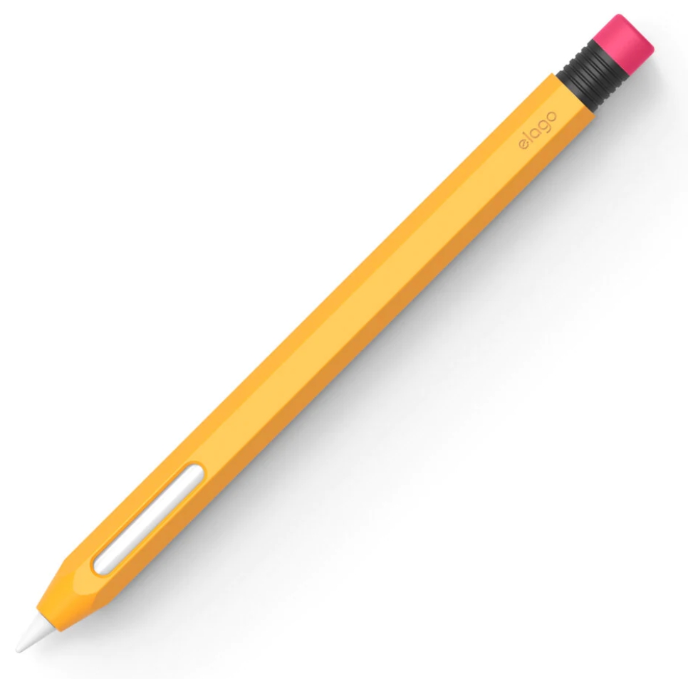 애플펜슬 2세대 클래식 펜슬 케이스(Classic Pencil Case for Apple Pencil 2nd Generation)는 엘라고가 선보인 애플펜슬 2세대용 케이스다. 마치 고전적인 연필 형태로 생겼지만 실리콘 재질이어서 그립감이 좋고 육각형이어서 책상 위에 올려놔도 구르지 않고 놔둘 수 있다.
