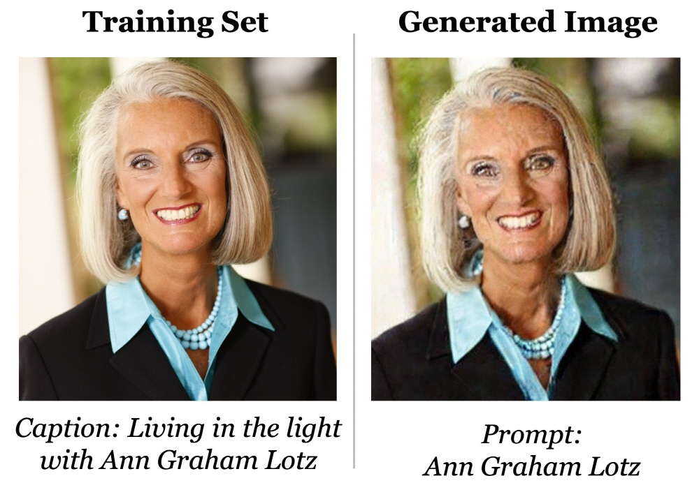 이에 따르면 요즘 AI는 학습 데이터 이미지를 완전히 기억할 수 있다고 한다. 학습 데이터를 기반으로 새로운 이미지를 만드는 대신 데이터 완성 복사본 거의 동일한 이미지를 만들 수 있다는 것. 이 학습 데이터 그러니까 오리지널 이미지에는 저작권이 있는 것도 있어 그대로 세상에 나와 버리면 저작권 이슈가 생길 수 있다.