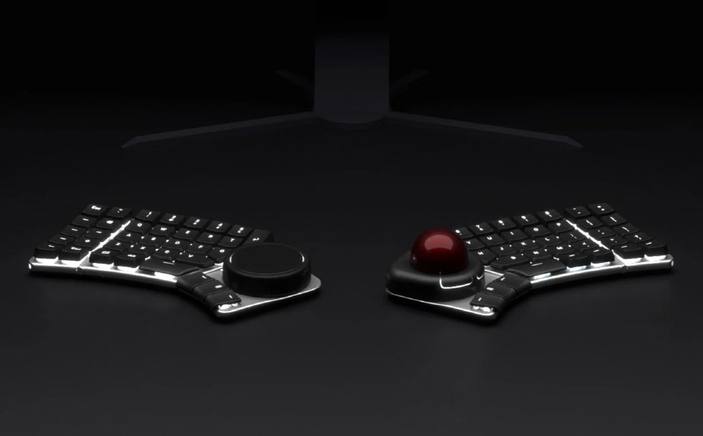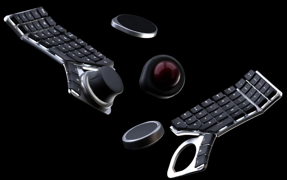 나야 크리에이트(NAYA CREATE)는 다이얼과 트랙볼을 하나로 묶은 인체공학 키보드다. 키보드에는 관절이 2곳 있기 때문에 사용 용이성에 맞춰 30도나 60도로 구부려 자연스러운 타이핑을 할 수 있다. 다이얼과 바로가기 키 3개는 엄지 쪽에 배치해 키보드 외측에서 사용하는 왼손용 기기보다 손 이동거리가 짧고 엄지만으로 직관적인 조작도 할 수 있다. 트랙볼이나 터치패드로 바꾸면 마우스가 불필요해지며 3D 공간을 자유롭게 조작할 수 있는 3D Nav 모듈도 매력적이다.
