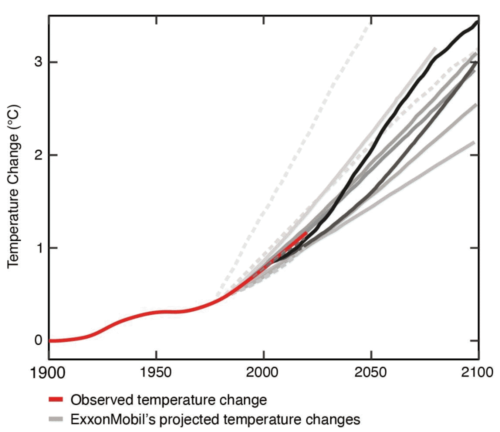 엑손모빌은 1970년대 정교하게 기후 변화에 대한 과학적 연구를 실시했으며 2020년에는 대기 중 이산화탄소 농도가 400∼420ppm이 될 것이라는 예측을 내놨다. 실제로 2019년 5월에는 지구 이산화탄소 농도가 415ppm을 넘어서 엑손모빌 예측이 정확했다는 걸 알 수 있다.
