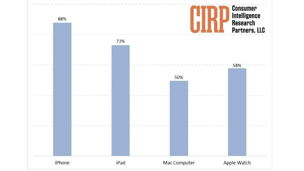 시장조사기업인 CIRP(Consumer Intelligence Research Partners)가 북미에서 실시한 애플 제품 이용도에 관한 분석 보고서를 발표했다. 아이폰과 아이패드, 애플워치, 맥북 같은 맥 4개 제품 카테고리를 모두 동시에 소유하고 있는 사용자층이 절반 가량이었다고 한다.