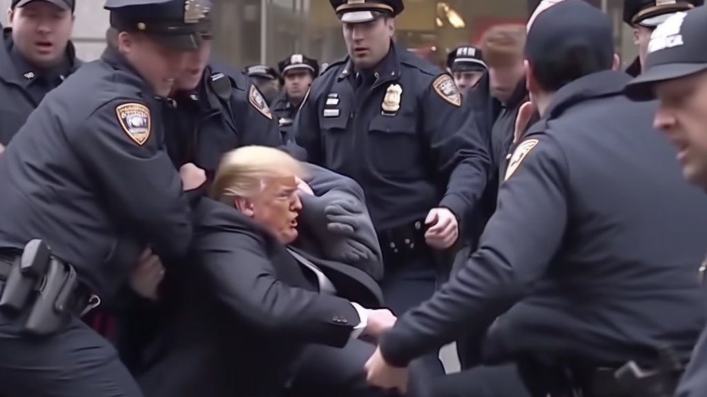 영국 조사 보도 기관 벨링캣(Bellingcat) 창립자인 엘리엇 하긴스는 3월 21일 현재 형사 고발 중인 트럼프가 실제로 체포될 때까지 트럼프가 체포되는 이미지를 생성햇다며 미드저니 V5를 이용해 마치 트럼프가 실제로 체포에 저항하는 것 같은 이미지나 수감된 것 같은 이미지 50장을 생성해 트위터에 올렸다.
