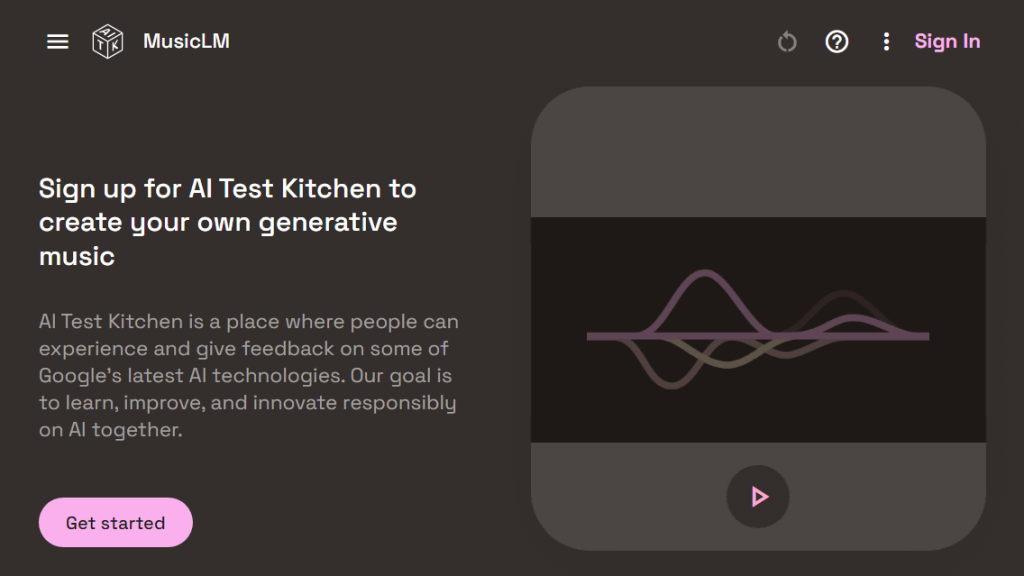 뮤직LM은 공부를 위한 앰비언트 뮤직, 디너 파티에 맞는 소울 스타일 재즈송 등 곡 분위기나 목적을 텍스트로 지정하면 자동으로 음악을 생성하는 게 가능하다. 구글은 뮤직LM이 전문 음악각든 초보자든 광고 소재를 표현하는데 도움이 되는 실험적 도구라고 소개한다. 다만 공개 당시 윤리적 과제를 해결한 데이터세트로 학습하고 있기 때문에 공개된 뮤직LM에선 특정 아티스트에 의한 연주나 가성을 재현한 것 같은 음악은 생성할 수 없다고 한다. 이곳은 등록 대기 목록에 등록해야 체험할 수 있다.