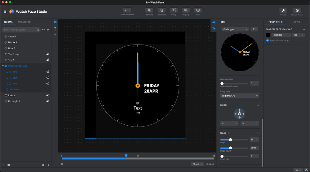 워치 페이스 디자인에도 다양한 콘셉트를 도입할 수 있다. 예를 들어 아날로그와 디지털 보드 표면 등 복잡한 기능을 포함한 다양한 정보를 표시할 수도 있다. 아이디어를 더한 특색 있는 디자인도 실현할 수 있다. 워치 페이스 포맷에선 웨어OS 일부로 워치 페이스 에디터가 내장되어 있어 사용자가 워치 페이스를 커스터마이징하기 위해 직접 데이터를 만들 필요가 없다. 워치 페이스 포맷 발표에 맞춰 삼성전자는 워치페이스 스튜디오 최신 버전을 공개하고 있으며 개발자는 곧바로 오리지널 워치 페이스를 만들 수 있다.