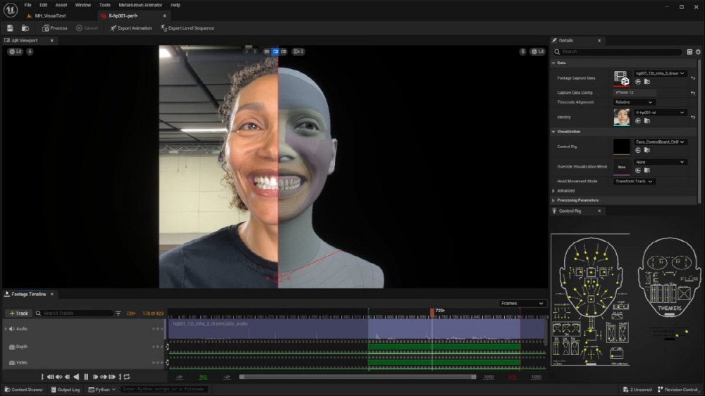 메타휴먼 애니메이터는 언리얼 엔진 5.2에 탑재된 기능으로 얼굴 움직임과 표정 변화, 입 움직임을 고정밀도로 캡처해 게임과 영상에 반영할 수 있게 해준다. 캡처 전용 카메라나 마커는 필요 없으며 아이폰12 이후 모델에 무료 앱인 라이브 링크 페이스(Live Link Face)만 설치하면 된다. 물론 헤드마운트 카메라 시스템을 준비하면 아이폰보다 더 고화질 캡처도 할 수 있다.