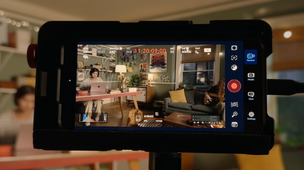 또 애플은 아이폰15 프로 맥스에서 촬영하는 순정 카메라 앱이 아니라 블랙매직 카메라(Blackmagic Camera)라는 무료 앱을 사용했다. 블랙매직 카메라는 촬영 해상도나 코덱, 색 공간 등을 세세하게 설정할 수 있어 애플 이벤트 영상은 애플 로그(Apple Log)에서 촬영되고 있었다. 블랙매직 카메라는 컬러 그레이딩 프리셋인 LUT를 프리뷰에 적용하면서 로그 촬영을 할 수 있는 게 순정 카메라 앱과 크게 다른 점이다.