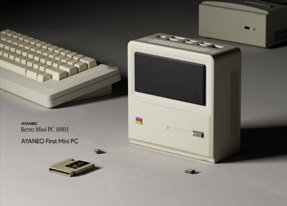 레트로 미니 PC AM01(Retro Mini PC AM01)은 휴대용 게임기를 제조하는 아야네오(AYANEO)가 선보인 초대 매킨토시 스타일로 디자인한 미니 PC다. 본체 속 검은 색 부분은 모니터처럼 보이지만 모니터는 아니다. 내부에는 듀얼 프로세서를 갖춰 연산 속도를 기대할 수 있고 운영체제는 64비트 윈도11 홈에디션이다.