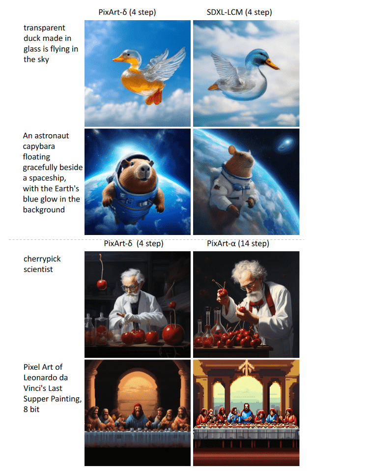 픽스아트-델타는 이미 존재하는 1024×1024 픽셀 해상도 이미지를 빠르게 생성하는 모델인 픽스아트-알파(PixArt-α)를 대폭 개선한 것으로 1024×1024 픽셀 해상도를 갖는 고화질 이미지를 불과 2∼4단계로 픽스아트-알파 7배인 최단 0.5초로 생성할 수 있다.