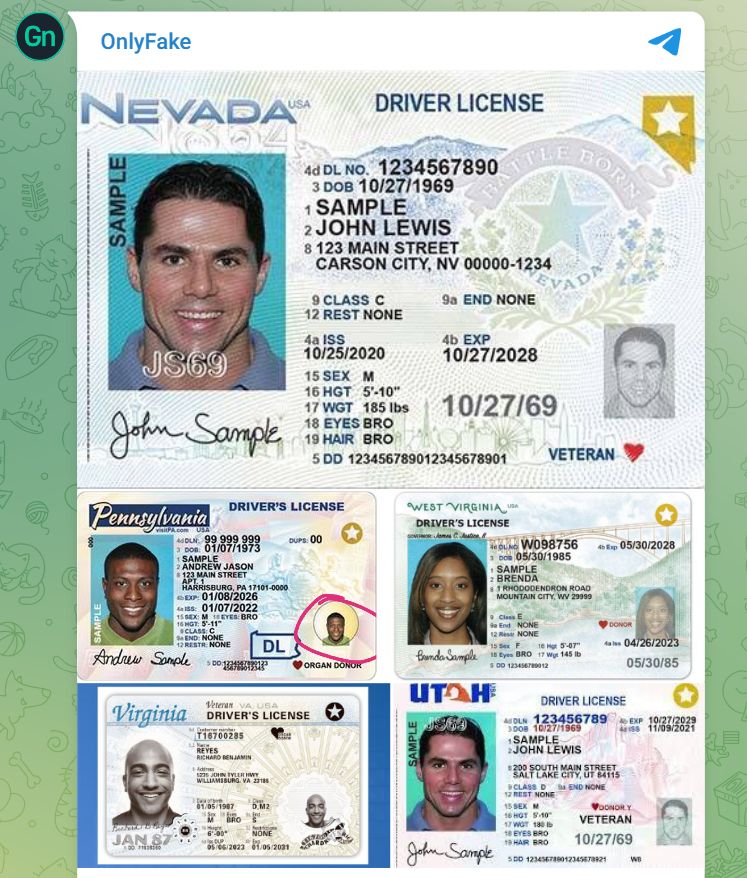 온리페이크에선 임의 이름이나 주소를 입력하는 것으로 운전면허증이나 여권 가짜 이미지를 작성할 수 있다. 온리페이크 공식 텔레그램 계정에는 위조 본인 확인 서류 작성 예시가 게시되어 있다. 온리페이크는 운전면허증을 바닥에 둔 사진, 여권을 연 상태 사진 등 제작에도 대응하고 있다. 서비스 특징 소개란에는 얼굴 사진을 생성 가능하며 이름에 맞는 필기 서명 생성 가능, 엑셀에 데이터를 입력해 일괄 생성 가능하다는 꽤 위험한 기능이 즐비하다.