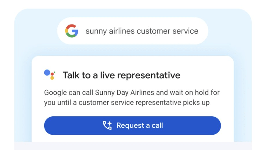 사용자는 회사 전화번호를 구글에서 검색하면 전화 요청(Request a call) 옵션이 표시될 수 있다. 이를 선택하면 구글이 대신 각사 지원망에 전화를 걸어 고객 서비스 담당자가 나올 때까지 보류로 하고 나오면 구글이 사용자에게 전화를 걸어 담당자와 연결해준다. 이 기간 중 사용자는 통화 상황과 대략적인 대기 시간에 대한 피드백을 SMS로 받을 수 있다.