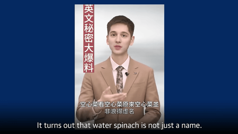 이 동영상에서 뉴스 내용을 읽고 있는 이는 사람이 아니라 AI로 생성된 가짜 뉴스 캐스터라는 지적이다. 영상 출처나 제작자는 불명이지만 이는 대만 독립을 지지하는 이들에게 의구심을 불러일으키기 위한 목적이므로 중국 측에 가까운 존재에 의해 만들어진 가능성이 높다고 보인다.