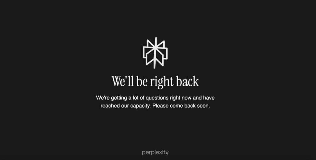 퍼플렉시티는 서비스가 대량 요청을 받을 때 표시되는 용량 초과 메시지가 나타났다. 이 오류 메시지에는 곧 돌아온다거나 현재 많은 질문이 들어와 용량 한도에 도달했으니 다시 오라고 적혀 있었다. 퍼플렉시티는 클로드가 복구된 시간과 비슷하게 시스템 장애에서 복구됐지만 그 후에도 여러 차례 장애가 반복됐다고 한다.
