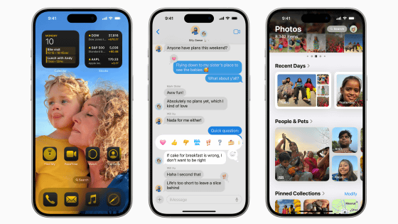 다음은 메시지 앱. 메시지에 이모티콘으로 반응하는 탭백(Tapback) 기능이 강화되어 모든 이모티콘이나 스티커를 사용할 수 있게 됐다. 메시지 예약 발송을 할 수 있는 나중에 보내기 기능도 추가됐다. 텍스트 표현 방식도 다양해져 진하게, 기울임꼴, 밑줄, 취소선 등을 사용할 수 있게 됐다. 텍스트 효과를 사용해 메시지를 시각적으로 강조할 수 있게 됐는데 텍스트 효과는 iOS 측에서 자동 제안해 줄 예정이다.