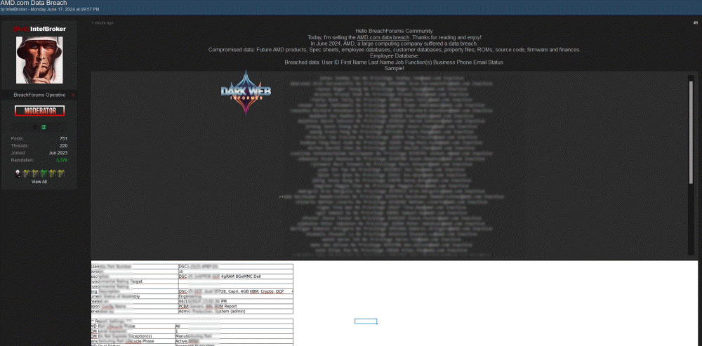 https://platform.twitter.com/widgets.js🚨MAJOR BREACH🚨IntelBroker is allegedly selling the AMD data breach dated June 2024.