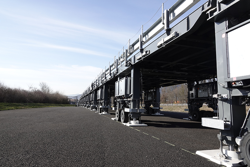 아스트라 브릿지는 자동 주행하는 타이어가 달린 다수 교량 거더를 나란히 배치하고 그 사이에 크레인으로 도로를 깔아가는 방식이다. 통행량이 적은 야간에 미리 도로를 깔아두면 주간에는 포장 공사에 전념할 수 있다.