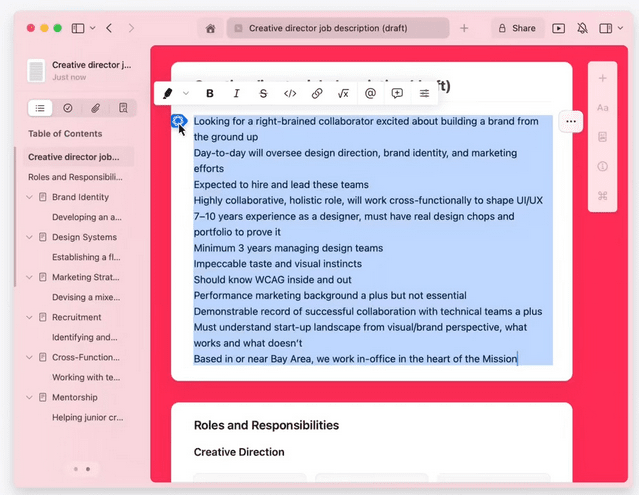 먼저 시스템 전반에서 사용할 수 있는 글쓰기 도구. 애플 인텔리전스는 이메일, 메시지, 메모, 페이지(Pages), 타사 앱에서 글을 작성할 때 재작성, 교정, 요약 기능을 제공한다. 이를 통해 사용자는 작성한 문장을 전문적, 간결함, 친근함 등 문체로 수정할 수 있고 문법과 문체, 구문을 자동으로 확인해 편집 후보를 확인할 수 있다.