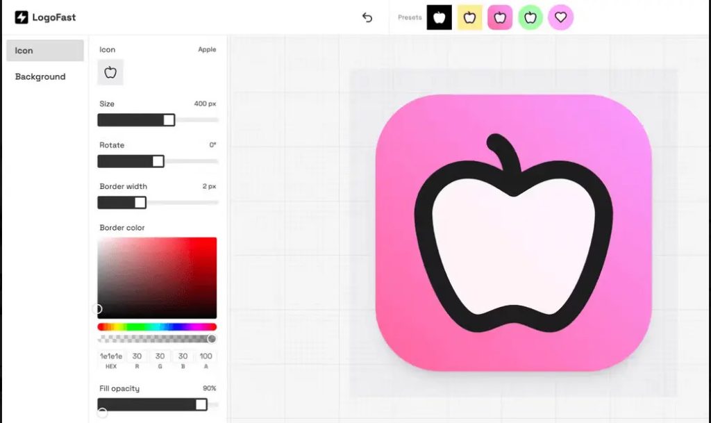 로고패스트(LogoFast)는 무료로 브라우저에서 사용할 수 있는 서비스로 아이콘과 배경만 심플한 로고 디자인을 간단하게 만들어 다운로드할 수 있다. 로고패스트에선 로고에 포함되는 아이콘 선, 아이콘 채우기, 배경 3가지를 자유롭게 결정할 수 있다.