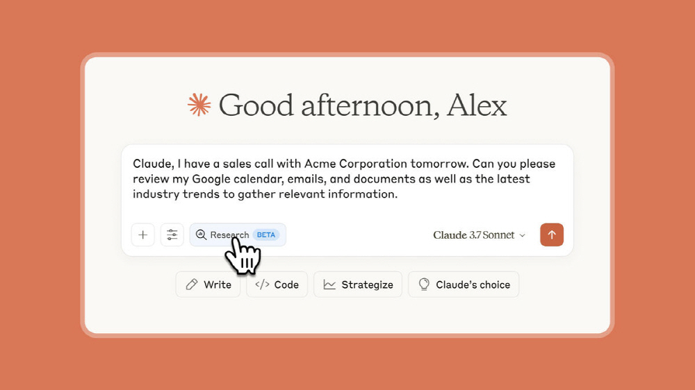앤트로픽이 채팅 AI 클로드(Claude)에 사용자 지시에 따라 상세한 조사와 분석을 수행하는 새로운 기능인 리서치(Research)를 도입했다고 발표했다. 또 클로드가 G메일과 구글 캘린더를 포함한 구글 워크스페이스와 통합될 수 있게 됐다고도 발표됐다.