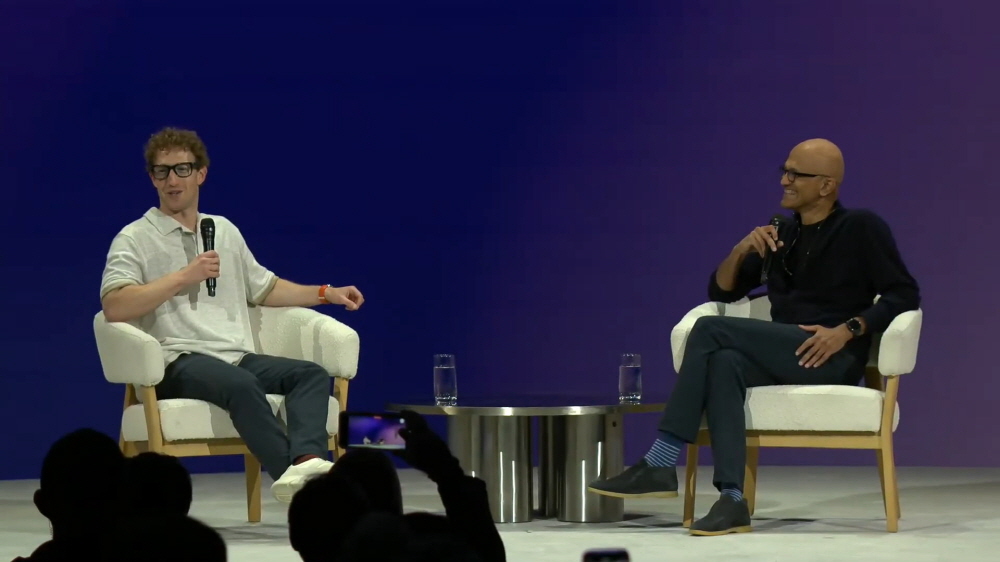 지난 4월 29일 개최된 라마콘 2025(LlamaCon 2025)에 나선 나델라 CEO는 메타 마크 저커버그 CEO와 AI 발전과 오픈소스 생태계에 대한 기여에 대해 논의했다. 이 중에서 나델라 CEO는 마이크로소프트 같은 대기업조차 AI에 크게 의존하고 있다고 밝혔다. 논의 중에 저커버그와 나델라는 자사 AI 도입 규모에 대해 자세하게 설명했다. 나델라 CEO는 마이크로소프트 리포지토리와 프로젝트에서 코드 3분의 1이 AI에 의해 생성되고 있다고 밝혔다. 한편 저커버그 CEO는 메타 AI 이용에 관한 구체적인 수치는 밝히지 않고 Llama AI 모델 구축·작성하기 위한 미래 AI 모델 계획을 개략적으로 설명했다.