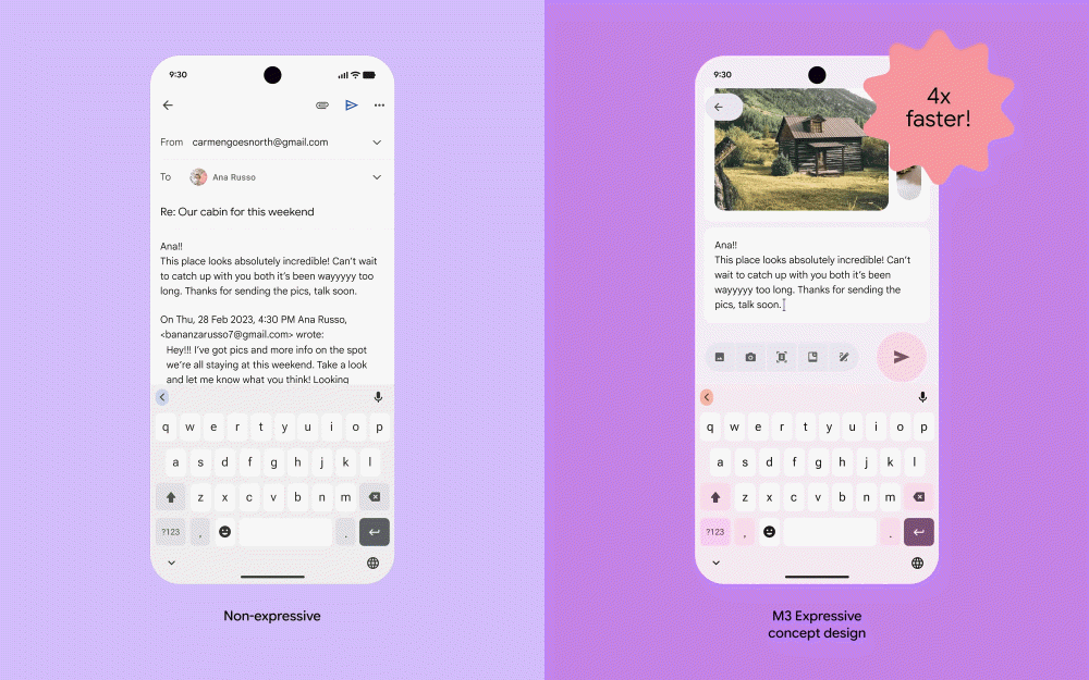 예를 들어 머티리얼 3 익스프레시브를 채택하지 않은 이메일 앱과 머티리얼 3 익스프레시브를 채택한 이메일 앱 콘셉트 디자인으로 피험자에게 이메일을 보내게 하는 실험을 하면 머티리얼 3 익스프레시브를 채택한 이메일 앱은 채택하지 않은 이메일 앱에 비해 4배나 이메일 전송까지의 과정이 빨랐다고 한다.