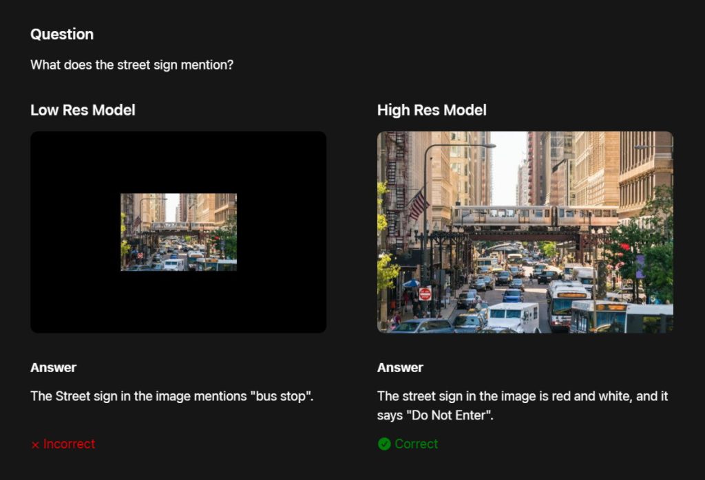 VLM 정밀도는 보통 입력 이미지 해상도가 높을수록 향상되기 때문에 정밀도와 효율성 사이에 트레이드오프가 존재한다. 그 중에서도 문서 분석, UI 인식, 이미지 기반 자연어 쿼리 응답 등 정밀한 이해가 요구되는 작업에서 이 문제가 두드러진다. 예를 들어 이미지 속 교통 표지판에 대한 질문을 했을 때 저해상도 이미지로는 정확한 응답이 어렵지만 고해상도 이미지라면 표지판을 정확히 식별할 수 있다.