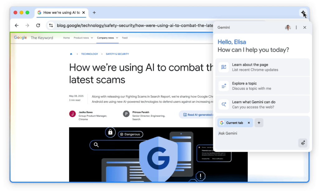 구글 크롬 역사상 최대 업데이트라고 구글이 표현하는 업데이트가 크롬에 적용된다. 지금까지 크롬에 통합된 AI 챗봇을 직접 호출할 수 있는 제미나이 인 크롬(Gemini in Chrome)은 구글 AI 프로, 구글 AI 울트라 구독 이용자 대상 서비스였지만 구독 이용자 이외에게도 개방되는 동시에 제미나이 인 크롬이 대폭 강화된다.