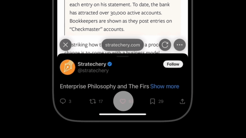 이를 해결하기 위해 엑스는 링크 페이지를 이동한 뒤에도 화면 하단에 좋아요, 댓글, 리포스트 버튼을 계속 표시하도록 UI를 변경하는 테스트를 진행 중이다. 페이지를 스크롤할 때 하단 버튼은 자동으로 숨겨져 사용자 경험을 해치지 않는다.