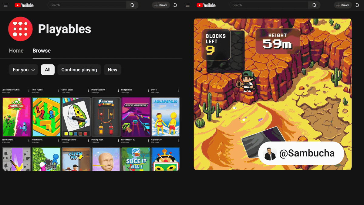 유튜브는 크리에이터 Sambucha, AyChristeneGames, Gohar Khan, Mogswamp 등과 협력해 플레이어블 빌더를 사용한 게임 제작을 진행하고 있다.