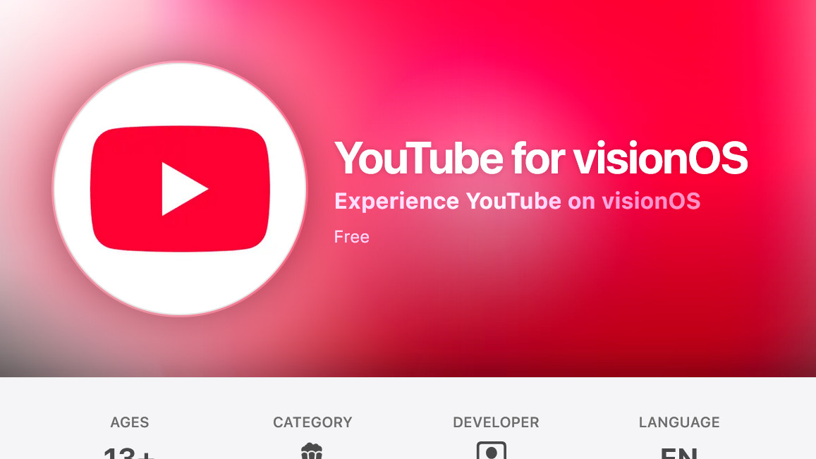 지난 2024년 애플 비전 프로(Apple Vision Pro)가 출시됐을 당시 유튜브는 visionOS 전용 앱 개발에 소극적인 태도를 보였지만 2월 12일 마침내 애플 비전 프로용 유튜브 공식 앱이 출시됐다.