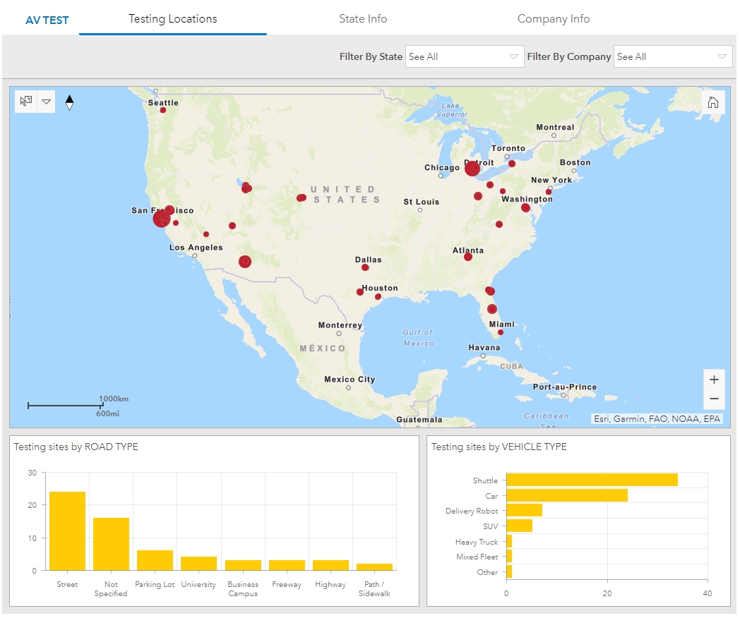 미국 정부가 9월 2일(현지시간) 미국 전국 어디에서 누가 자율주행 차량 테스트를 하고 있는지 알 수 있는 온라인 도구(Automated Vehicle Transparency ...