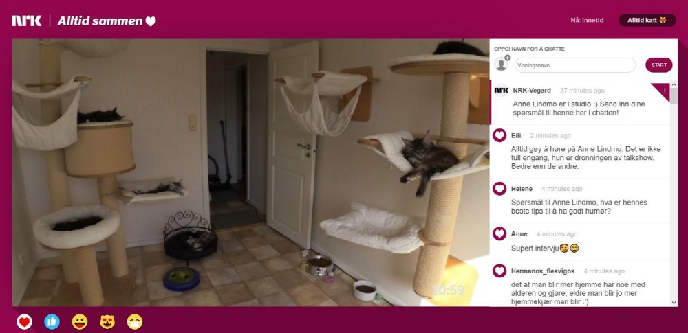 노르웨이 국영 방송국 NRK가 고양이를 계속 지켜보는 슬로우TV를 방송 중이다. 물론 고양이는 보통 자고 있기 때문에 브라우저 창을 활성화한 채 ...