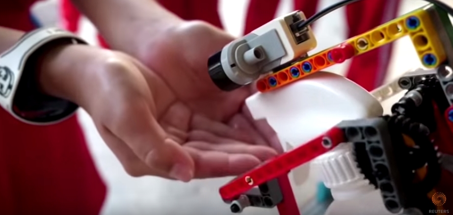 대만 가오슝에 위치한 한 초등학교에서 코로나19를 예방하기 위해 레고로 직접 만든 알코올 소독 로봇을 이용하고 있다. 손을 내밀면 스프레이가 노은 ...