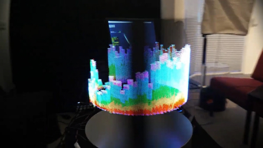 영화 스타워즈 에피소드 4: 새로운 희망에서 레아 공주가 3D 홀로그램으로 메시지를 전달하는 장면처럼 특수 안경이나 헤드셋 없이 3D 홀로그램을 투영하는 ...