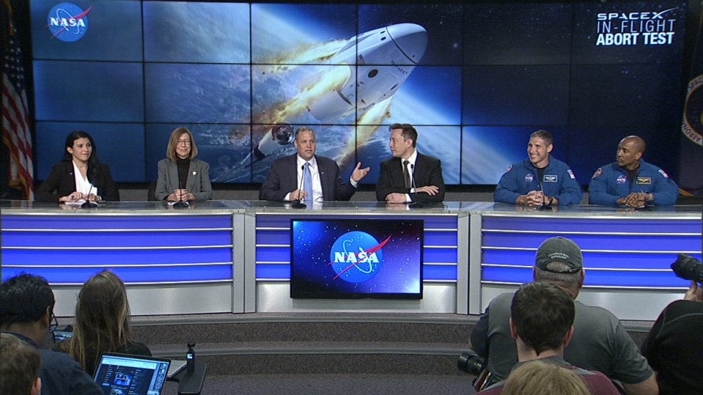스페이스X와 미 항공우주국 나사(NASA)가 크루 드래곤(Crew Dragon) 비행 중지 시스템 테스트에 성공한 뒤 1월 19일(현지시간) 기자회견을 열고 미션과 다음 단계에 ...