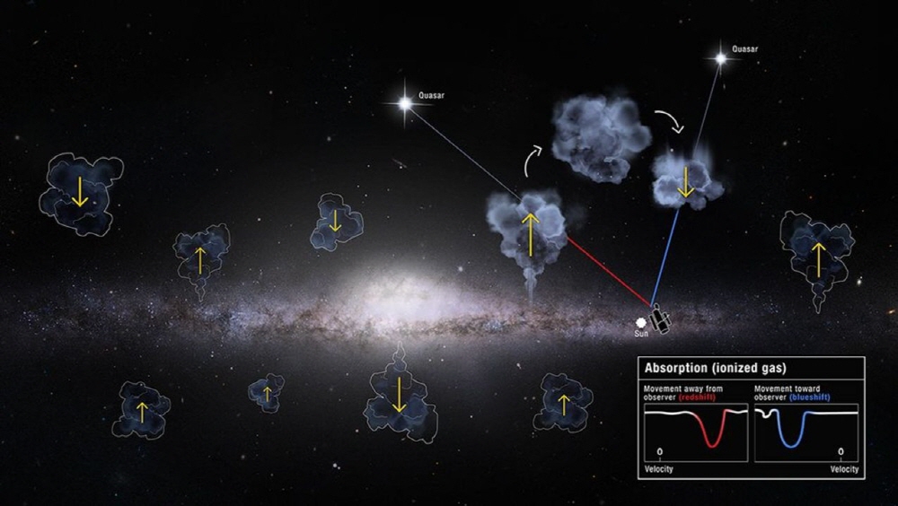 최근 연구에 따르면 은하계는 뱉어내는 것보다 더 많은 가스를 흡입하고 있다고 한다. 은하수는 대량 이온화 가스, 플라즈마를 흡입하고 이를 쏟아낸다. ...