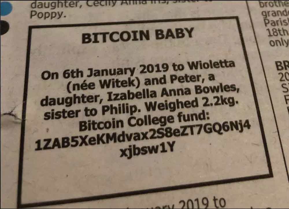 영국에서 갓 태어난 아기의 교육비를 비트코인으로 기부해달라는 신문 광고를 내 2주 만에 300명 넘는 사람에게 3,000파운드(한화 435만 원대) 비트코인 기부를 ...