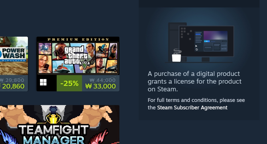 스팀(Steam) 쇼핑 카트 페이지에 디지털 제품을 구매하면 스팀에서 해당 제품 라이선스가 부여된다는 알림이 표시되기 시작했다. 이 변경은 미국 캘리포니아주에서 새로 ...