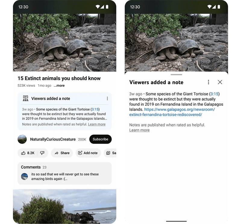 유튜브는 사용자가 동영상 아래에 주석을 달아서 해당 동영상이 패러디인지 실제 영상인지 등 추가 정보를 다른 사용자에게 알릴 수 있는 노트 ...