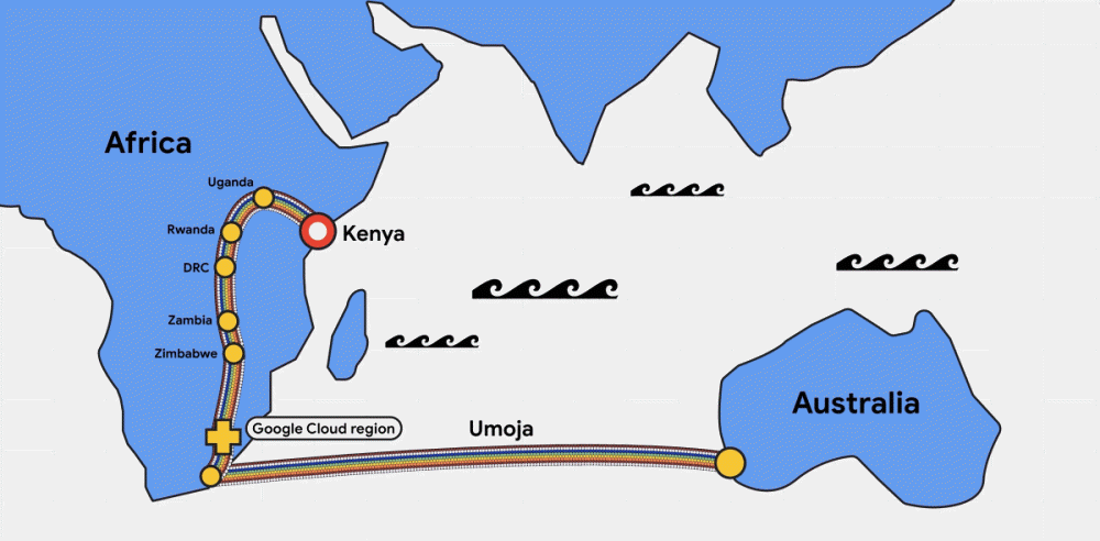구글이 아프리카와 호주를 직접 연결하는 우모자(Umoja) 광케이블 노선 구축을 발표했다. 우모자는 케냐, 우간다, 르완다, 콩고민주공화국, 잠비아, 짐바브웨, 남아프리카공화국을 육상 케이블로 ...