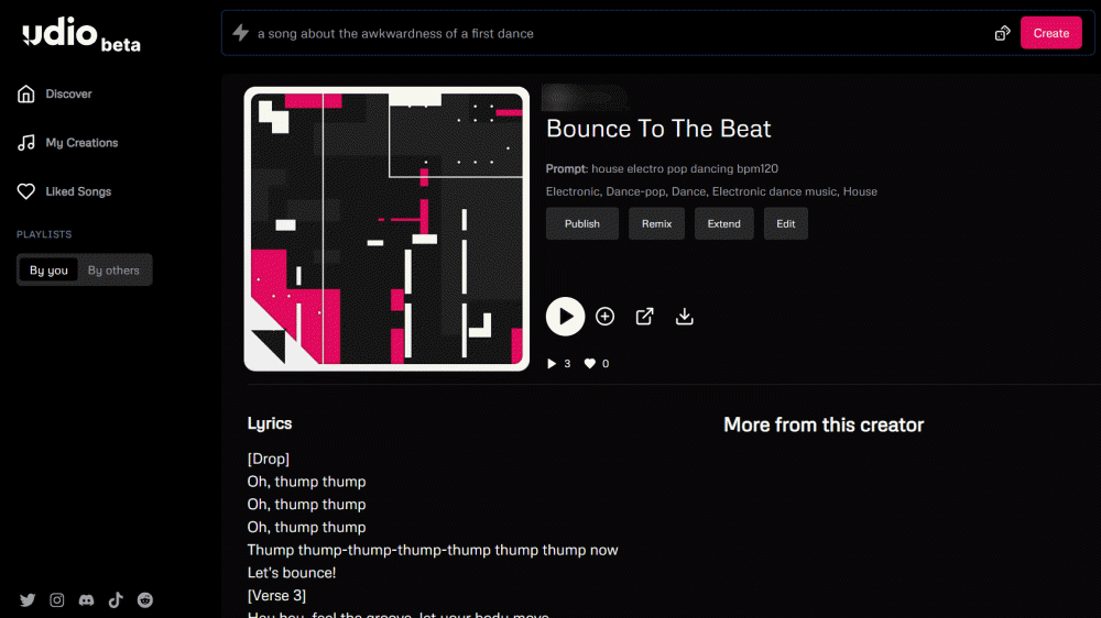 지난 4월 10일 브라우저에서 AI 자동 작곡 서비스인 유디오(Udio) 퍼블릭 베타 버전이 출시됐다. 현재 무료로 1개월에 1,200곡까지 생성할 수 있다고 ...