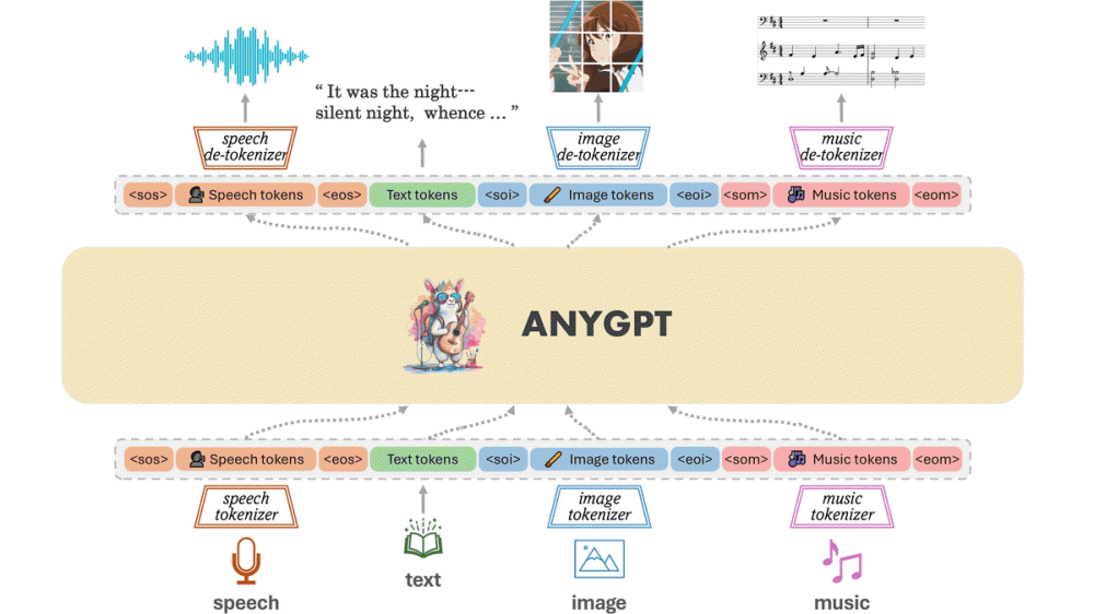 애니GPT(AnyGPT)는 음성과 텍스트, 이미지, 음악 등 여러 종류 데이터를 한 번에 처리할 수 있는 멀티모달 대규모언어모델이다. 기존 대규모언어모델 아키텍처나 학습 ...