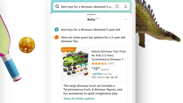 아마존이 러닝슈즈와 트레일 러닝슈즈는 뭐가 다르냐는 질문에 응해주는 AI인 러퍼스(Rufus)를 발표했다. 러퍼스는 아마존 앱 검색창에서 사용할 수 있다. 러퍼스는 제품을 ...