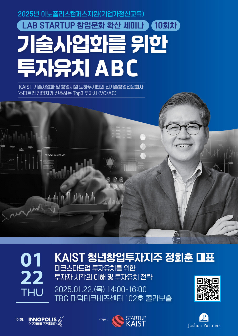 - 연사 : KAIST 청년창업투자지주 정회훈 대표