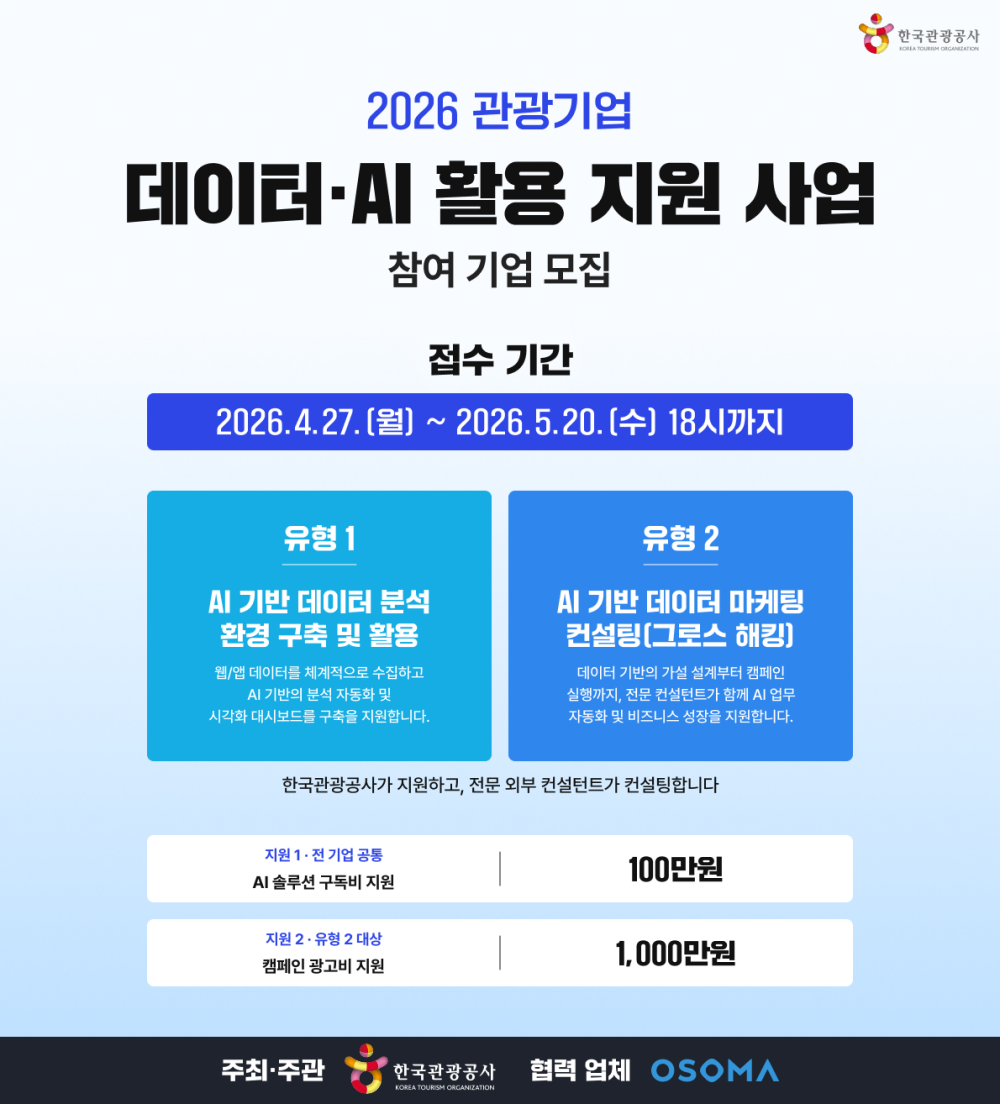 – 기업당 데이터 구축 및 광고비(최대 1,000만원) 지원